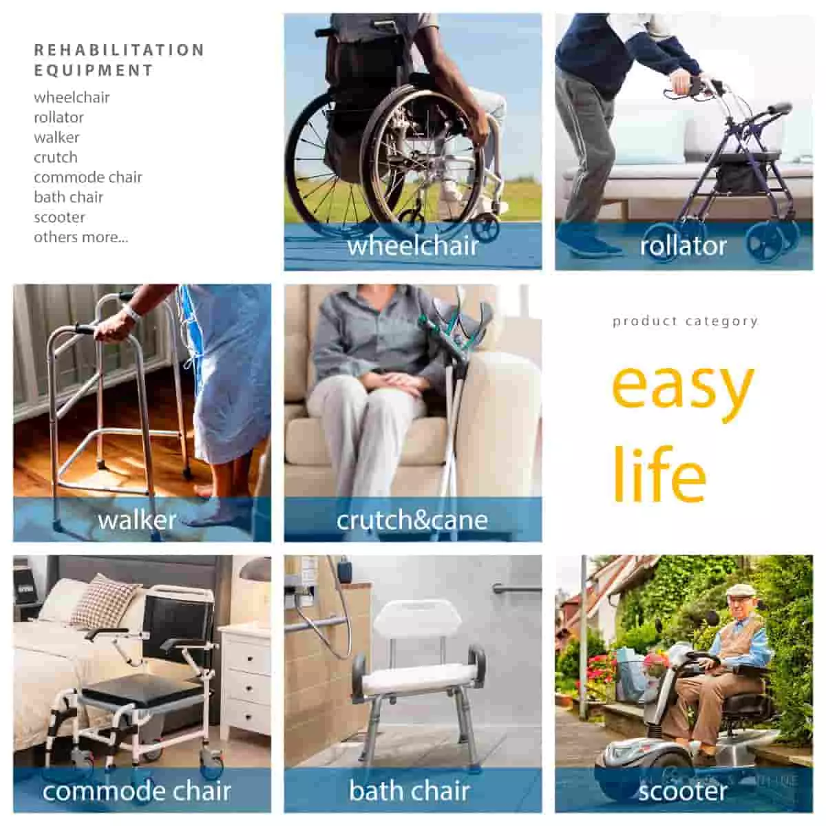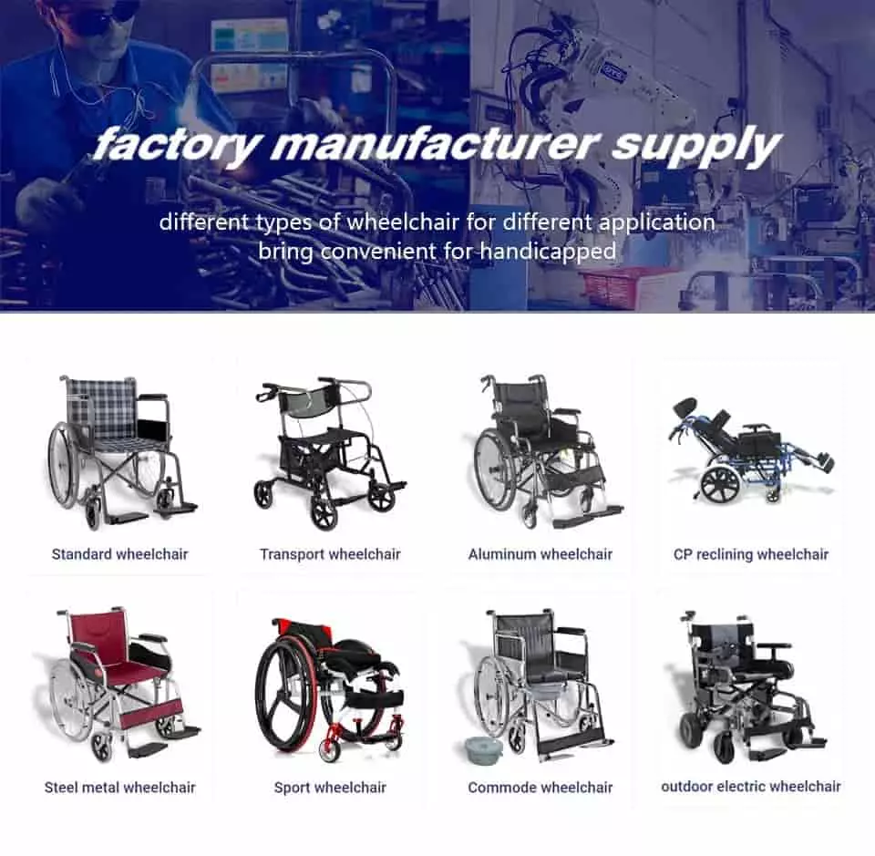 उत्पादनहरू OEM र ODM आपूर्ति गर्दछ, जस्तै हामीलाई Sतेल व्हीलचेयर, एल्युमिनियम व्हीलचेयर, पीओवर व्हीलचेयर, डब्लुalker, सीरुच, वाकर रोलेटरहरू, Commode कुर्सी, नुहाउने कुर्सी,अस्पतालको ओछ्यान, स्कुटर, रोबोट र अन्य मेड टेक पुनर्वास उपकरणहरू,